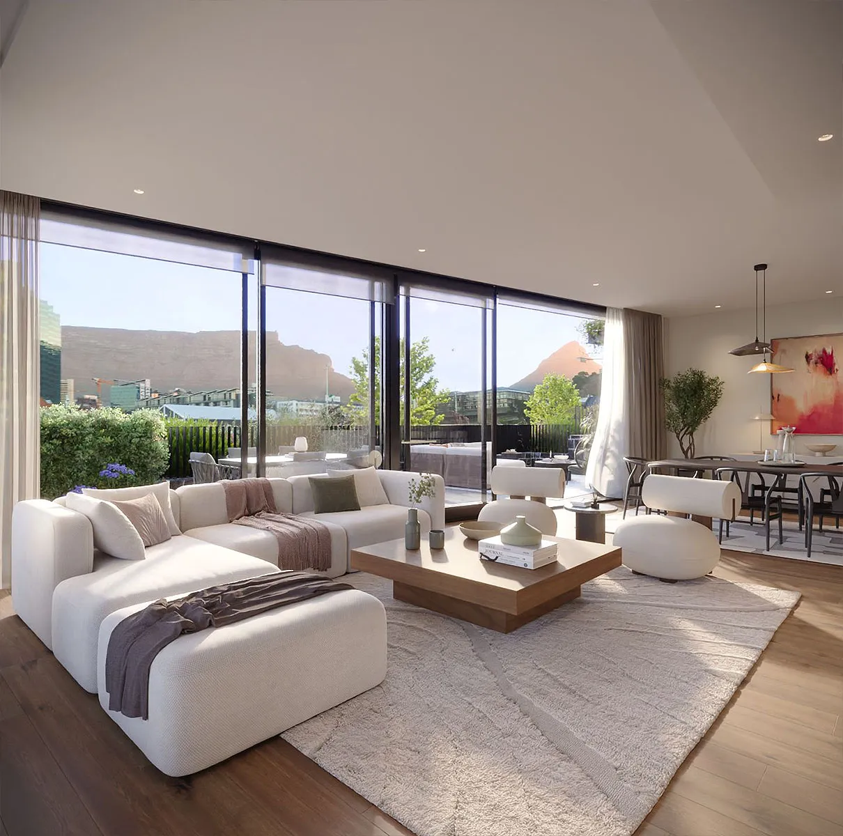 The development offers one-, two- and three-bedroom configurations spread over six floors, with exclusive penthouses on the top floor. The interior layouts have been finely designed complemented by superior interior finishes designed by Paragon Interface. Depending on where they’re located in the building, units offer spectacular views of the V&A Waterfront, Cape Town harbour, CBD, Table Mountain and Signal Hill.