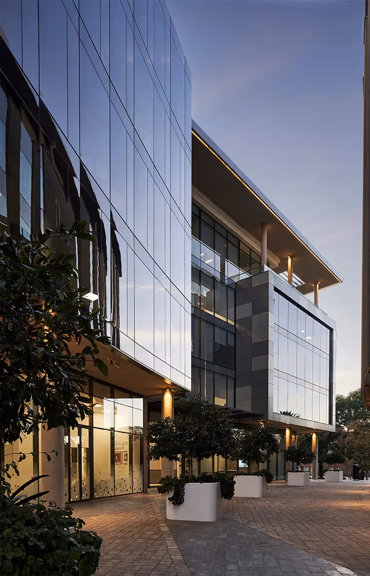 6 Parks Boulevard, for Intaprop, formed part of the first phase of the new Oxford Parks precinct in Johannesburg. Our brief was to design a striking headquarters building within the new commercial development. At just three storeys, and with only a portion of the façade facing Oxford Road, the design needed to be unique and eye-catching to make an impression on passing foot and vehicle traffic. Arup, a multidisciplinary planning, design and advisory consultancy, was the primary tenant at completion, occupying the 1 300m² office space.