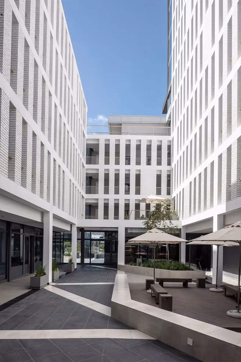 Each apartment was meticulously designed to optimise views and light and to provide generous spaces that extend to ample external terraces. Axis was a welcome addition to the vibrant, mixed-use Bridgeways Precinct in Century City when it was completed in 2018. Other developments in the area include commercial twin developments Sable Park and Bridge Park, which we also designed. Click to read more about these projects.