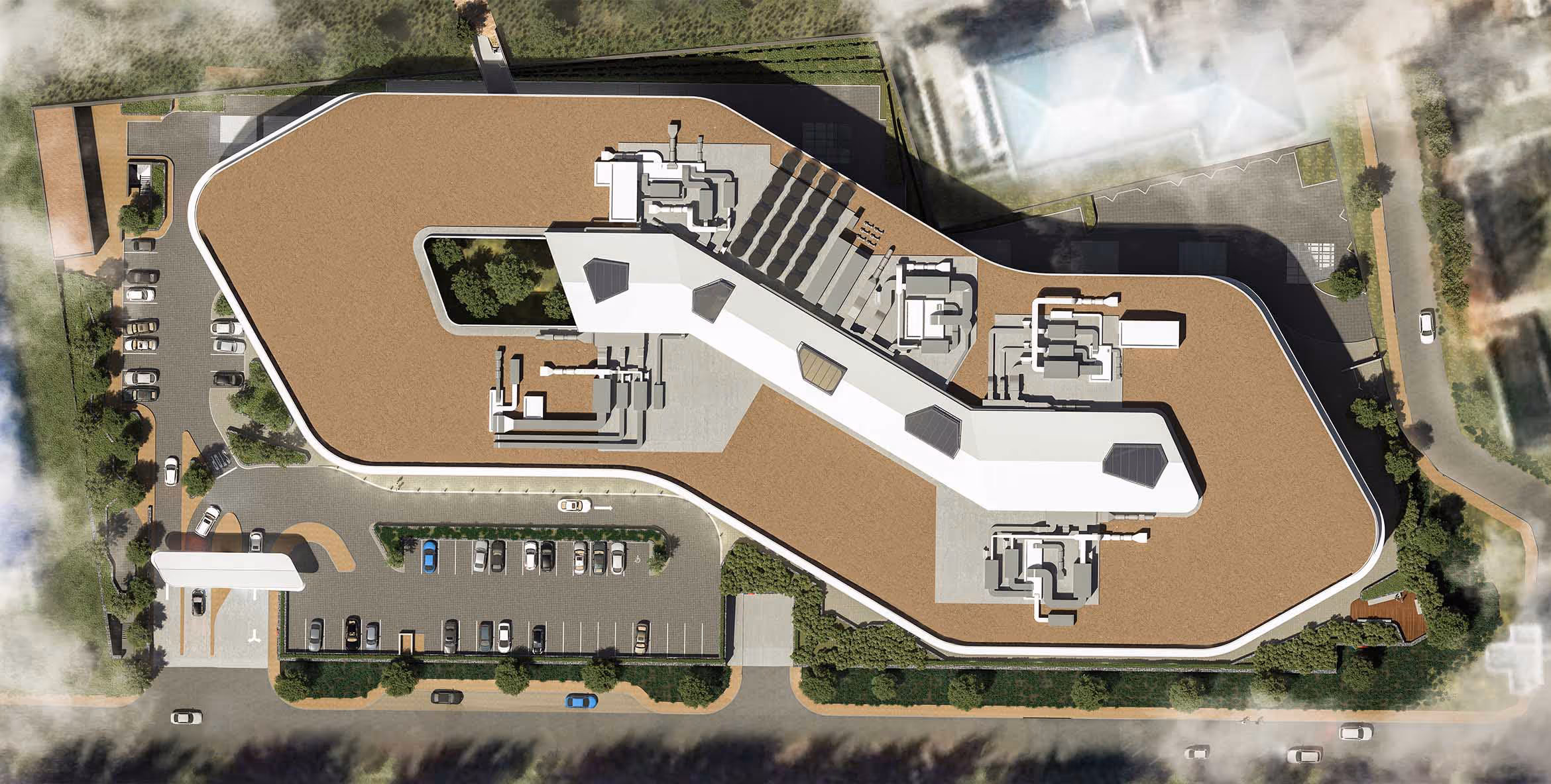 Our response was to create a striking, almost other-worldly building that uses effective exterior and interior design to optimise internal flow, foster inter-departmental interactions, manage corporate expenditure and enhance sustainability. The three-storey curvilinear building is defined by its dynamic interior architecture, which embodies the company’s progressive outlook and facilitates agile working