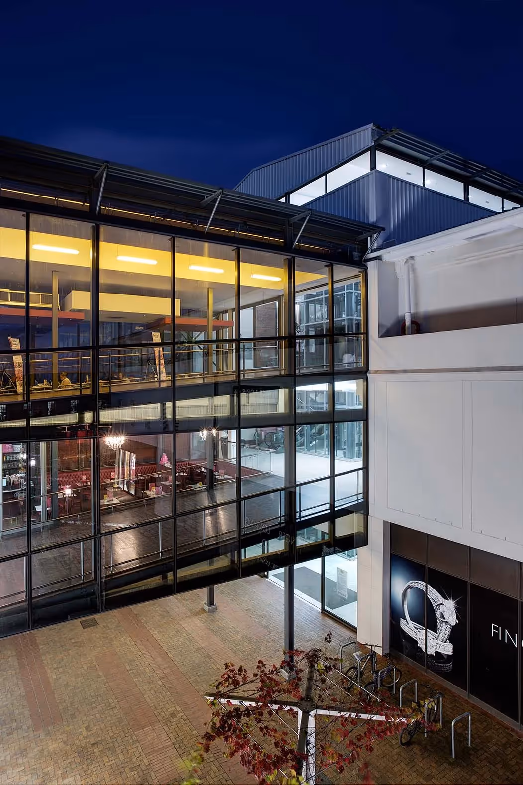 The mall is located in the central hub of the urban precinct. It was redeveloped and upgraded to form a premium shopping centre. The mall offers street-edge retail on the ground level and two levels of retail above. New shopfronts were created and ceilings were upgraded to improve the mall’s external and internal character. The mall also includes anew food and entertainment component on the third level. This level links the existing centre with a new mixed-use development to the north of Beyers Street, which was planned for phase two. The link is expressed as a glass box which creates a subtle transparent link between the two existing buildings. The upgraded building façades feature solid elements with large openings in the mall spaces and smaller openings in the upper-level offices.