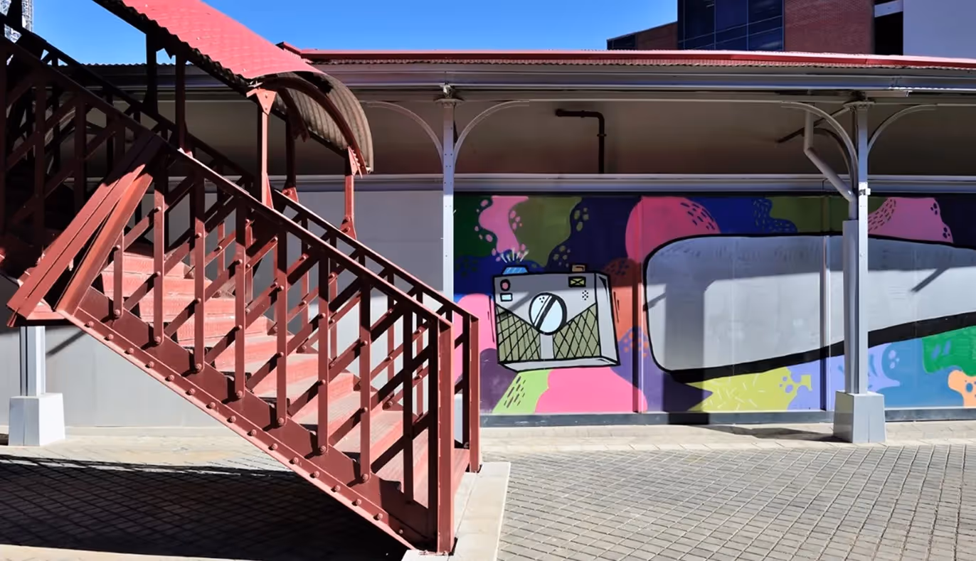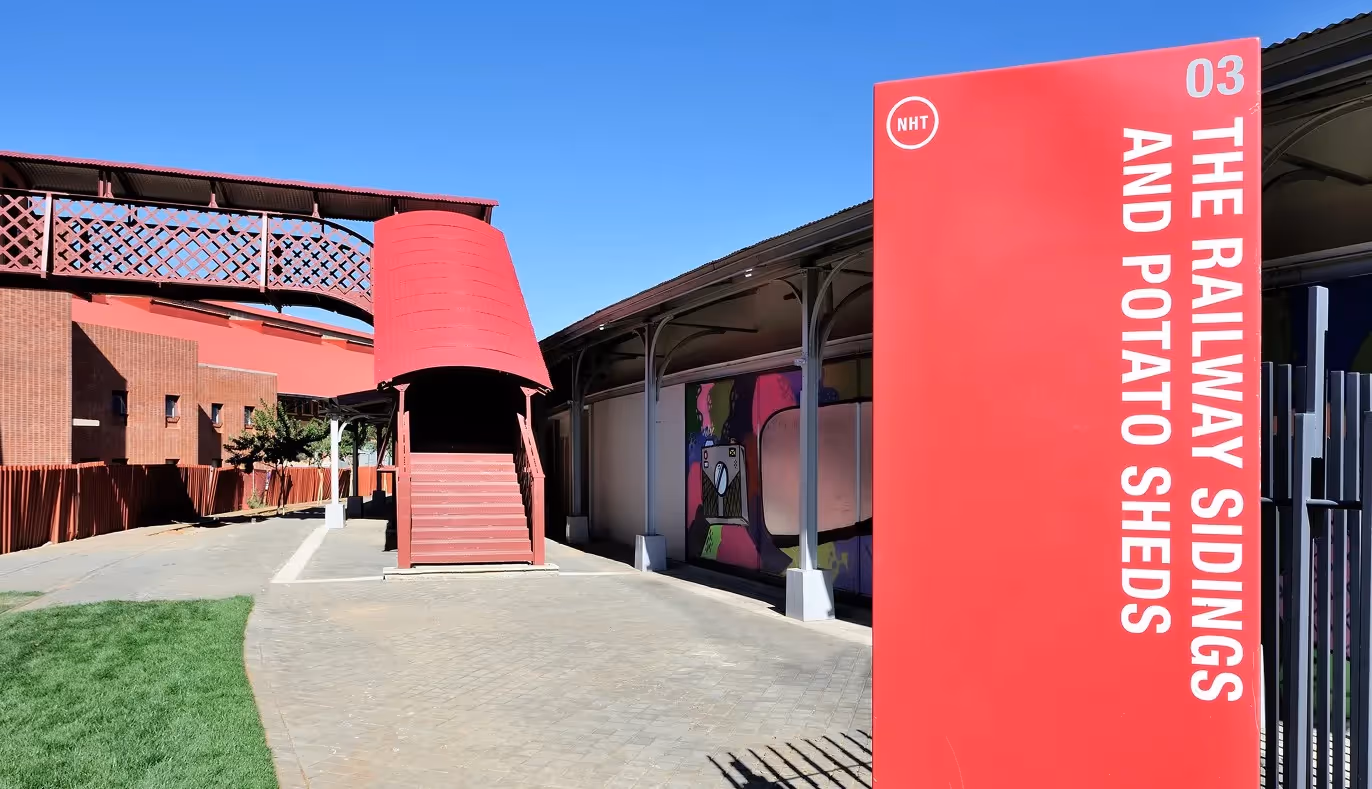 The site is bounded by significant buildings including the Market Theatre and Museum Africa, Mary Fitzgerald Square, the M1 freeway overpass and Nelson Mandela Bridge. It contains several historic structures such as the Potato Shed, Edwardian railway sidings and smaller heritage buildings such as the Majestic complex, an Edwardian toilet block, and the popular Kippies Jazz Club.