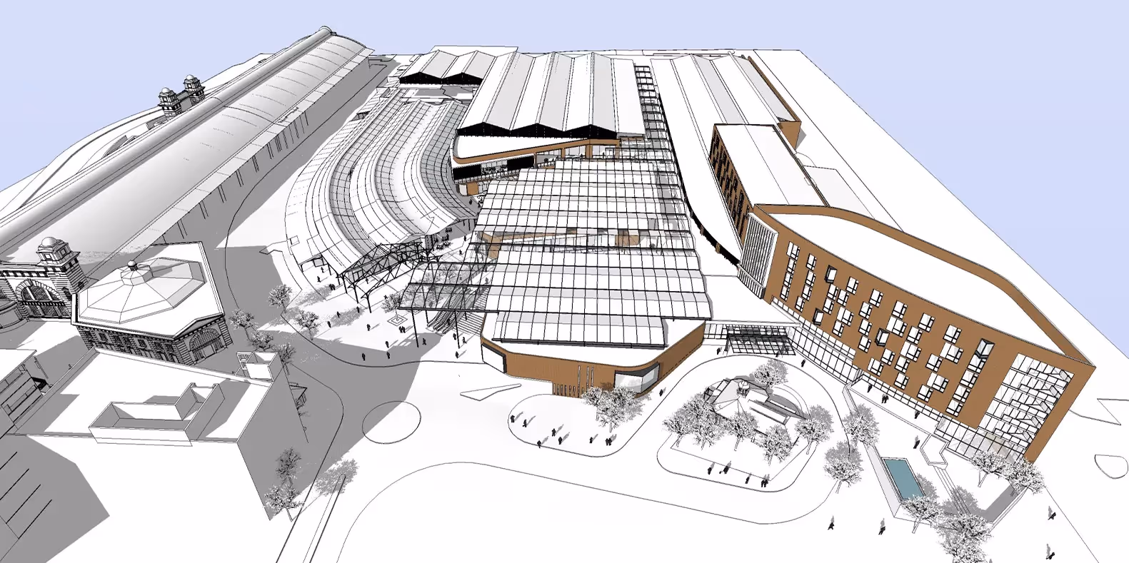 A significant approach was to retain the heritage elements of the site. In particular, the historic Potato Sheds were dismantled, fully restored and reinstated on site in their original position. The Edwardian railway bridge was also restored and re-established as a link between the existing Market Theatre and the adjacent new buildings.
