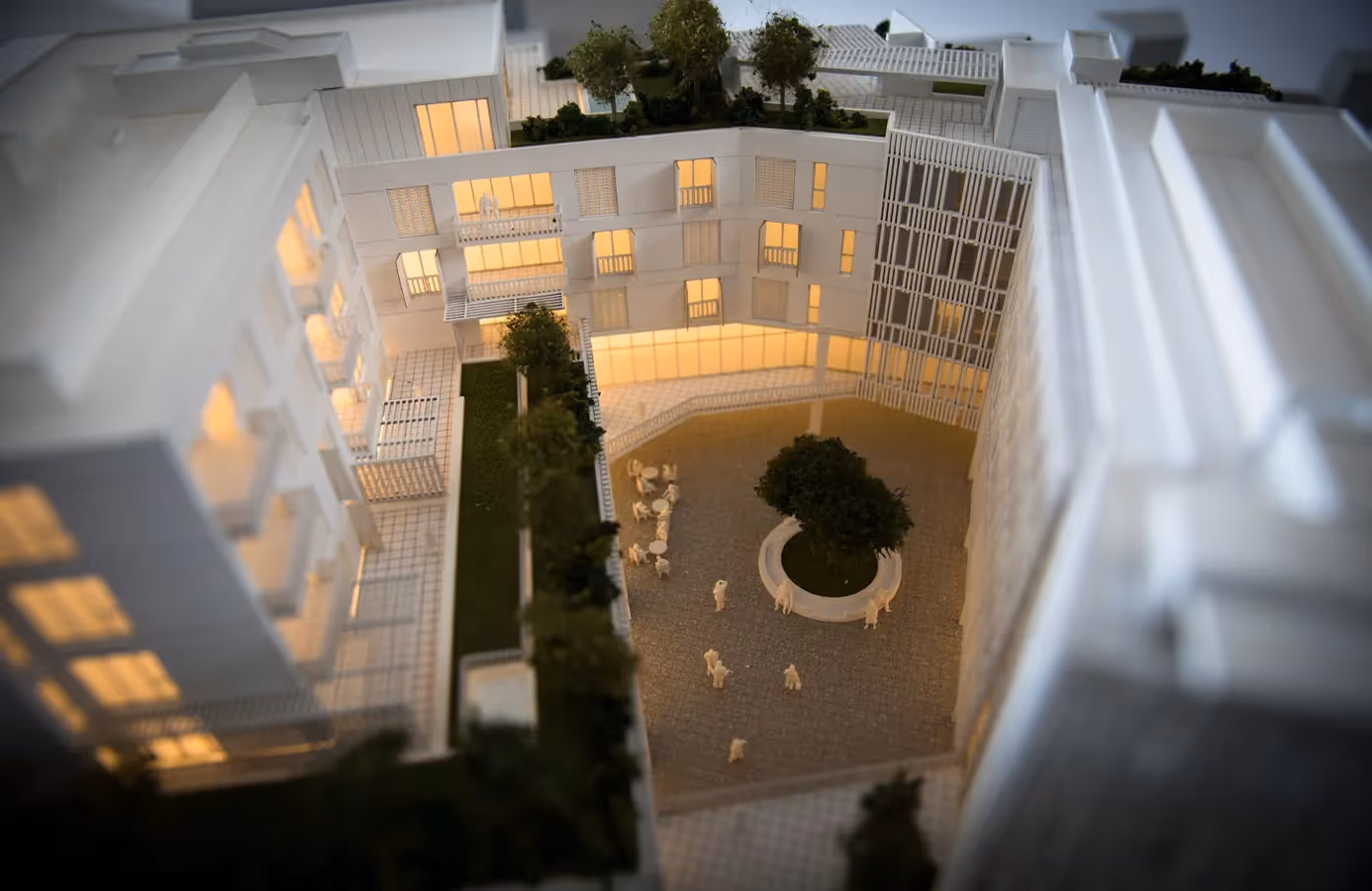 The central courtyard at the heart of the development is one of its most striking features. Cobblestones and cascading planted terraces provide a tranquil retreat from urban life, beyond the surrounding busy streets. Ground floor retail and commercial units open directly into the courtyard, enhancing it as an active public space. Secure underground parking, access control and separate entrances to the residential units contribute to the sense of privacy for residents. Overall, our design response has resulted in a development that seamlessly blends historical charm with modern sophistication, offering a unique living and working experience.