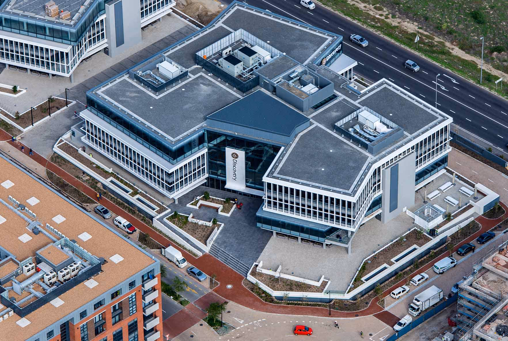 Sable Park is a commercial development we designed for Rabie Property Group in Century City, Cape Town, in 2018. Located at the southern edge of the thriving Bridgeways Precinct, it’s one of several dhk-designed buildings in the area. Our client Rabie Property Group needed a viable building that would sit at a prominent entry point into Century City, Cape Town, forming a recognisable front face for the suburb.