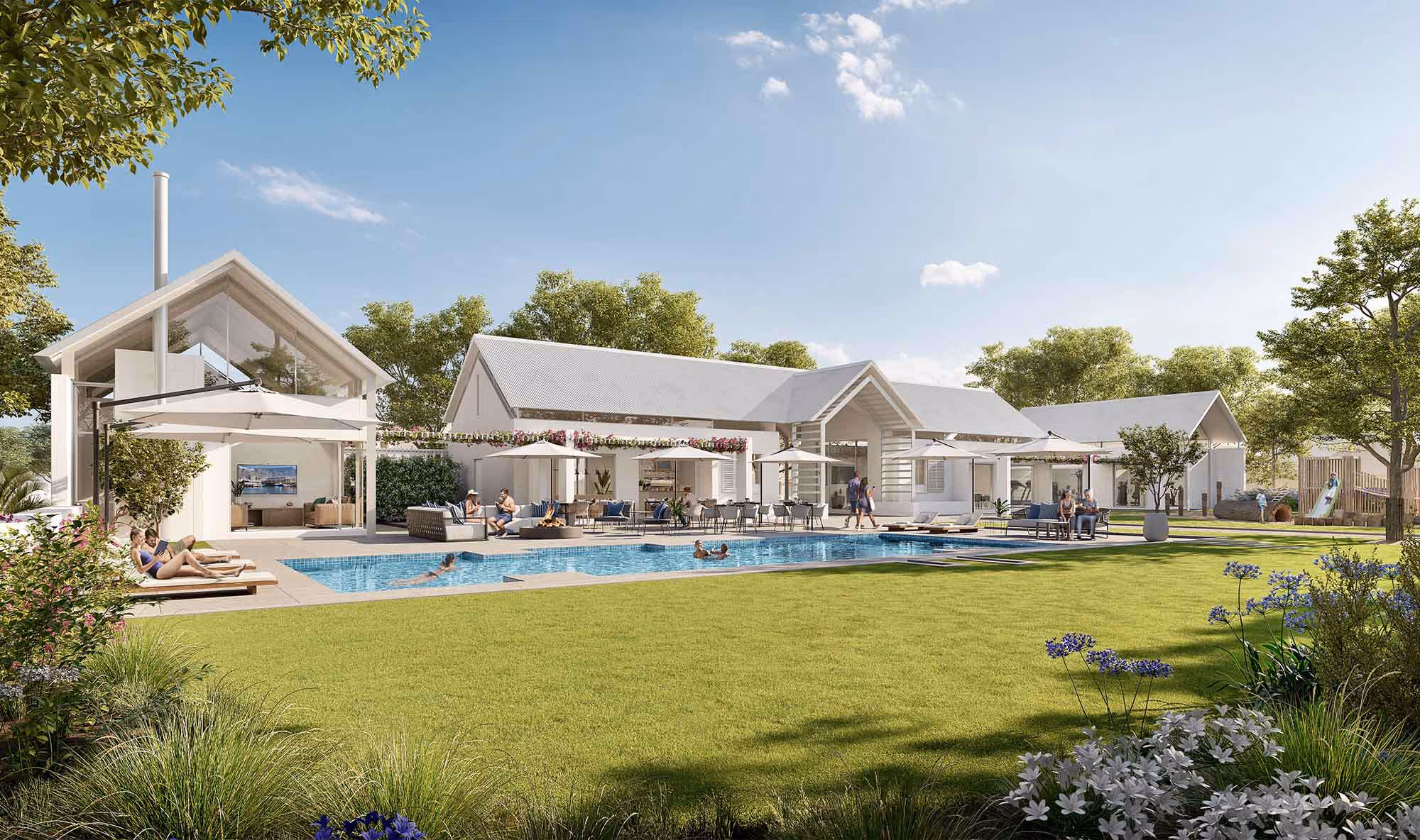 Springfield Estate is a new premium residential development located in George in the Western Cape, at the heart of South Africa's beautiful Garden Route. Our client, Vantage Property, wanted a concept masterplan and design for a 16-hectare lifestyle estate offering a selection of two- and three-bedroom modern homes offering a range of resort-level amenities, including a heated swimming pool and a spacious, welcoming clubhouse.